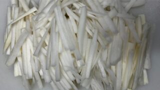 家庭菜園全般 初心者でもできる!切り干し大根の簡単作り方 たくさん収穫できた大根は、畑でも保存できますが、長期での保存におすすめなのが、「切り干し大根」です。今回の記事では、初心者でも失敗しない切り干し大根の作り方や、干すためのコツ・保存方法をわかりやすく解説しています。 2025.12.22 家庭菜園全般