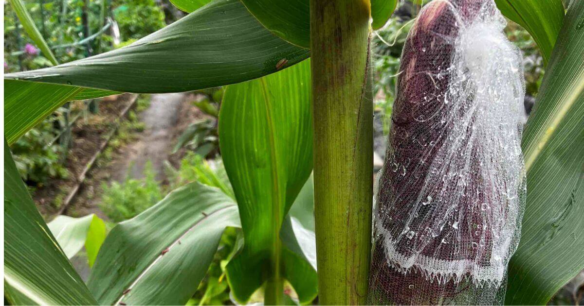 2.とうもろこしの周囲に防鳥ネットもしくは防虫ネットをする
